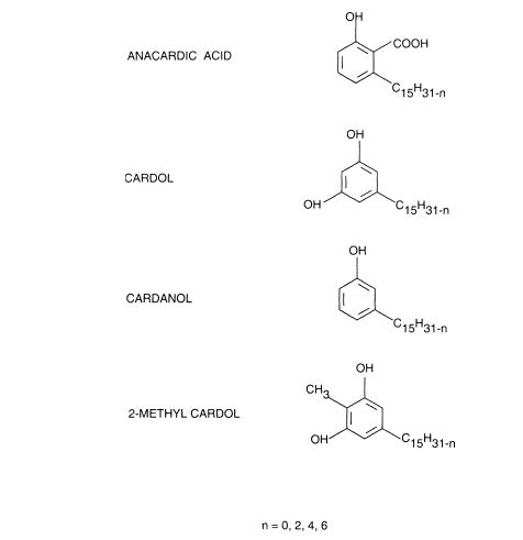 The following table lists typical phenolic compositions of natural (raw) and technical grade CNSL.