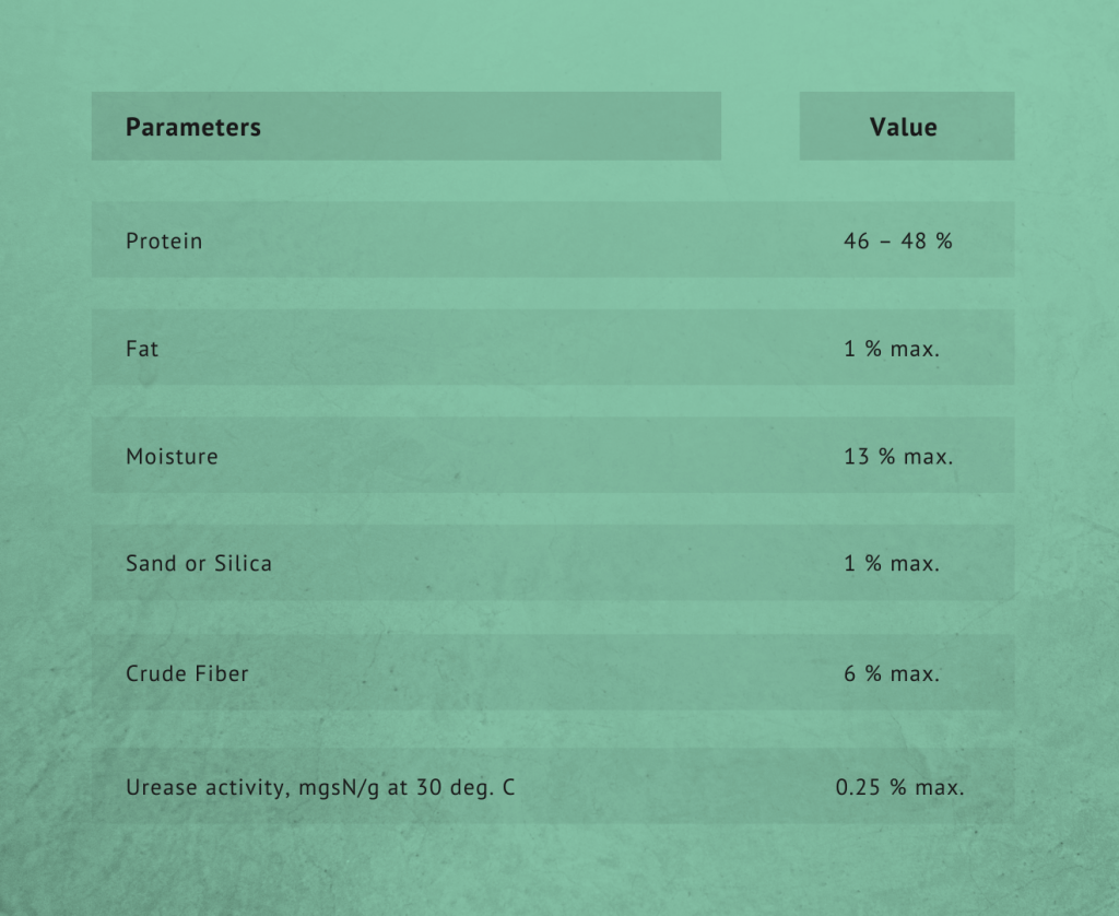 Some high-protein soy meal grades may specify protein content of up to 51%.