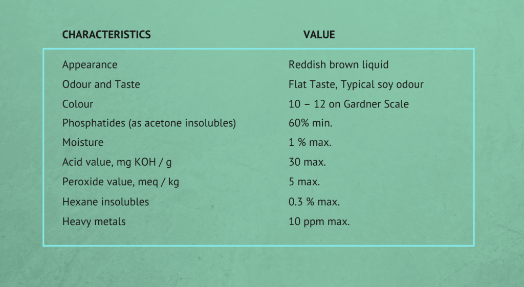 Typical specifications of liquid soy lecithin are presented in the following Table